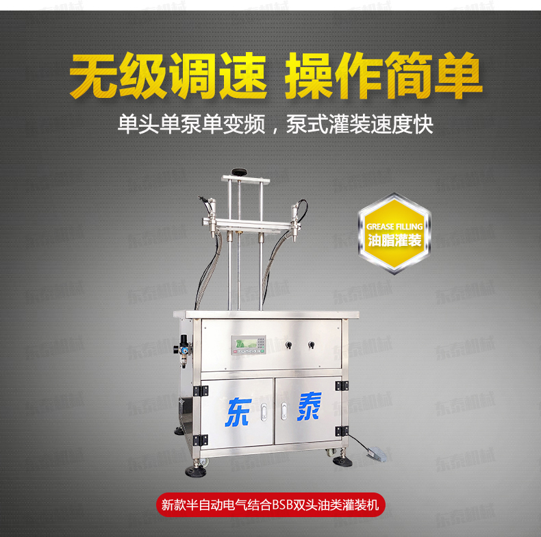 半自動食用油灌裝機適用于各種食用油、潤滑油等粘液體的定量灌裝,如花生油,大豆油,菜籽油、香油,潤滑油等油類的灌裝。采用先進的定量灌裝技術,結合微電子智能控制技術單頭單變頻控制系統,實現高精度、無級調速,操作簡單。各個灌裝頭可在一定范圍內任意調節間距和灌裝量,可使用各種大小形狀的容器的灌裝。自動化程度高。另外,機身零件采用優質不銹鋼制造,即耐用又衛生,長時間工作性能可靠穩定。達到GMP衛生要求。本公司產品通過了IS9000質量體系認證。本設備經久耐用,性能穩定,是食用油、潤滑油等行業理想的灌裝設備。