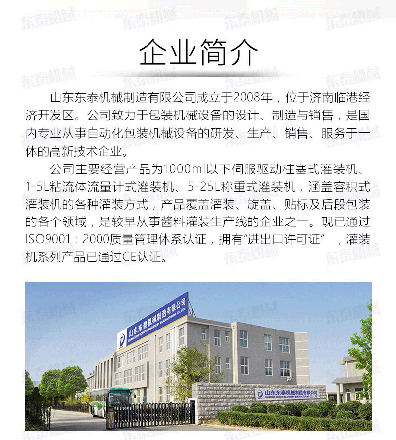 沈陽東泰機械隸屬于山東東泰機械,主營粉劑包裝機、醬類醬料包裝機、食用油灌裝機、食品包裝機、包裝流水線、灌裝生產線等產品,并且為東北地區客戶提供售后維修服務...