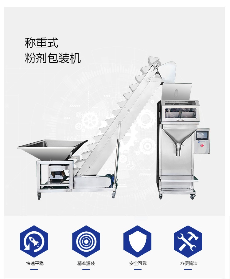 ZX-C型稱重式定量包裝機是一種機械給料與電子稱重組合的定量裝袋機械,廣泛適用于食鹽、化工原料、飼料、醫(yī)藥、糧食、食品添加劑等流動性較好的顆粒或粉狀物料的定量包裝,其優(yōu)點是:操作簡單、性能可靠、計量準(zhǔn)確、價格便宜、耐腐蝕性強,是一種理想的定量包裝機械。
